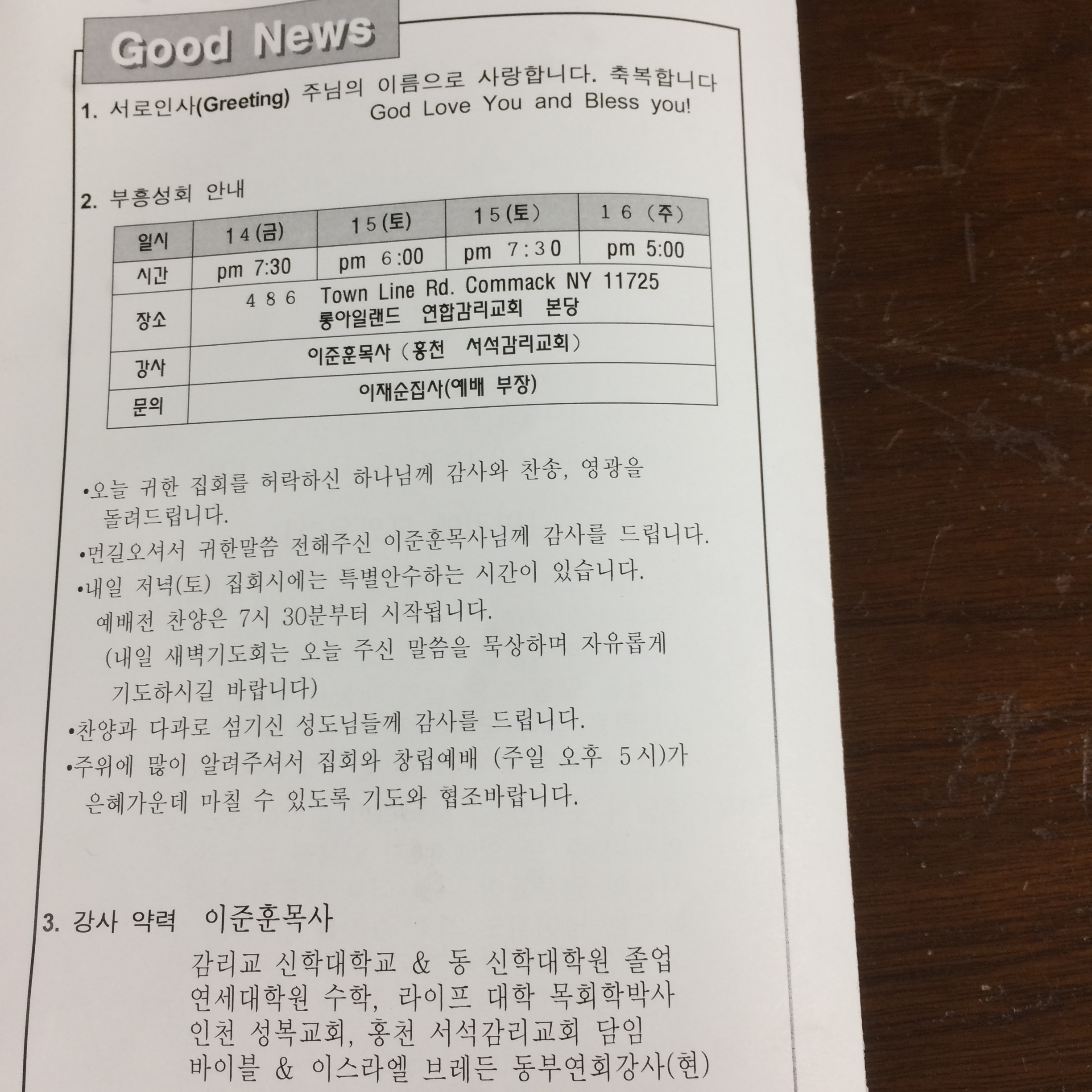 가을 신앙강좌 부흥회