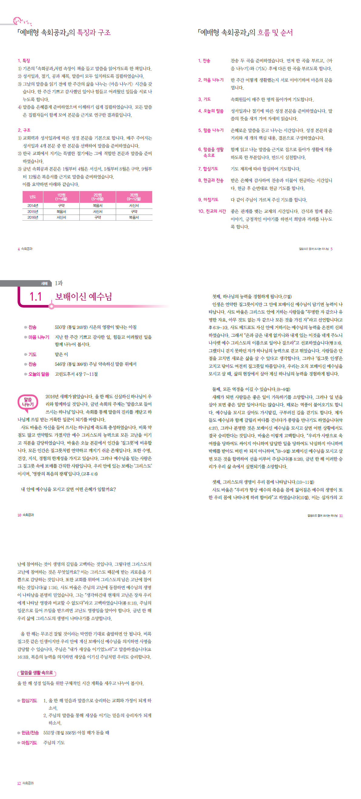 주제를 충실히 따른 「예배형 속회공과」와