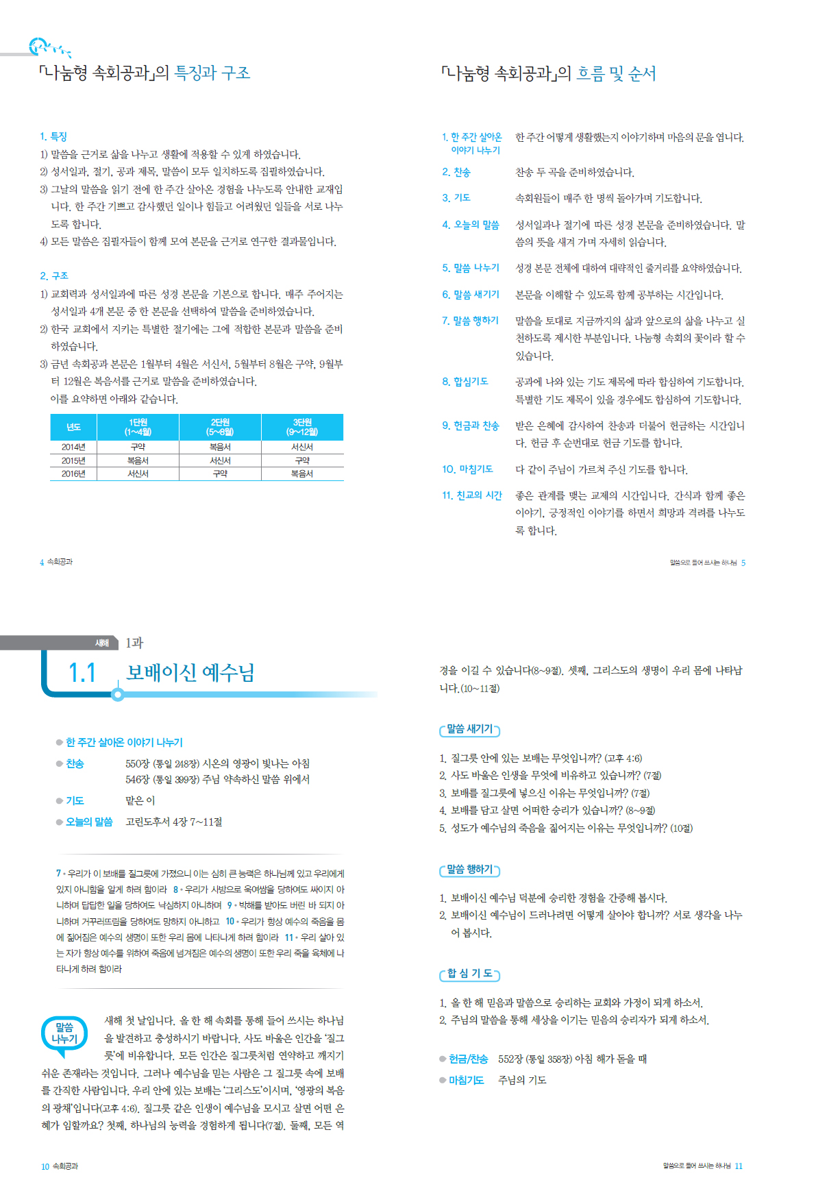 토의 활동을 강화한 「나눔형 속회공과」 두 종으로 발간되었습니다.